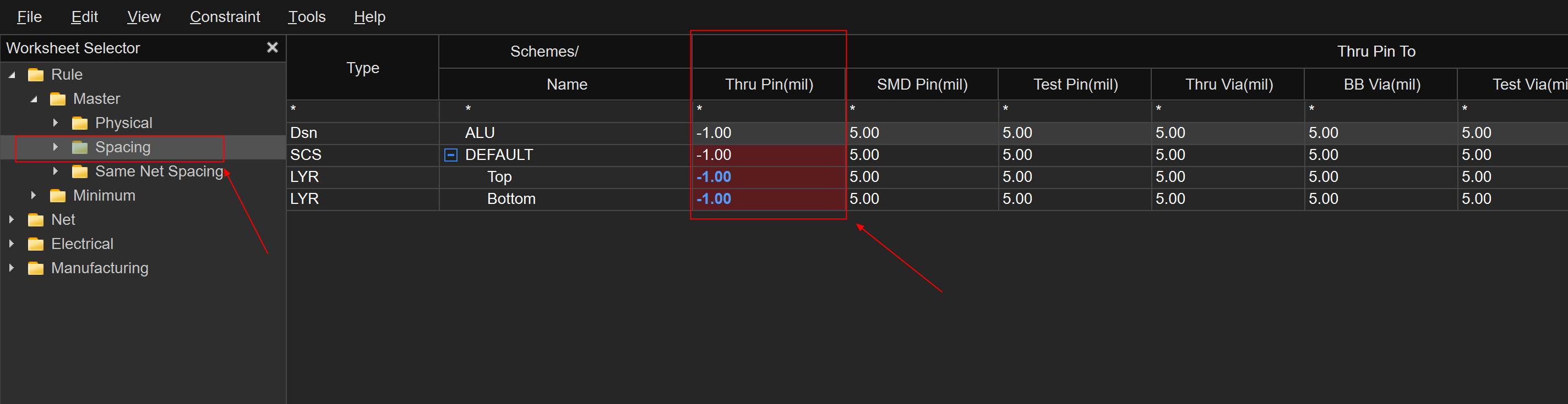 功能入口:Tools-->Constraints Editor-->Rule-->Master-->Spacing
