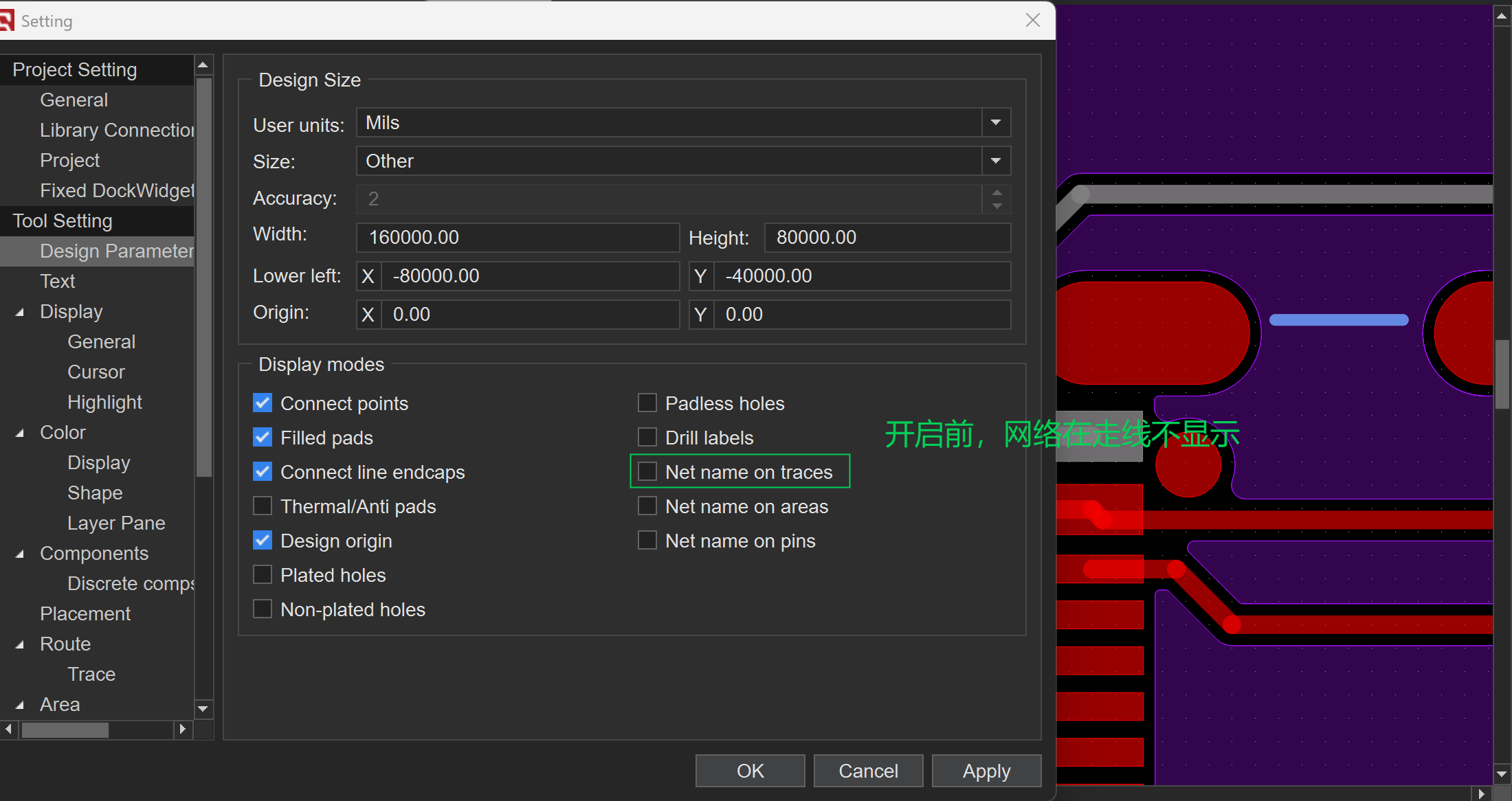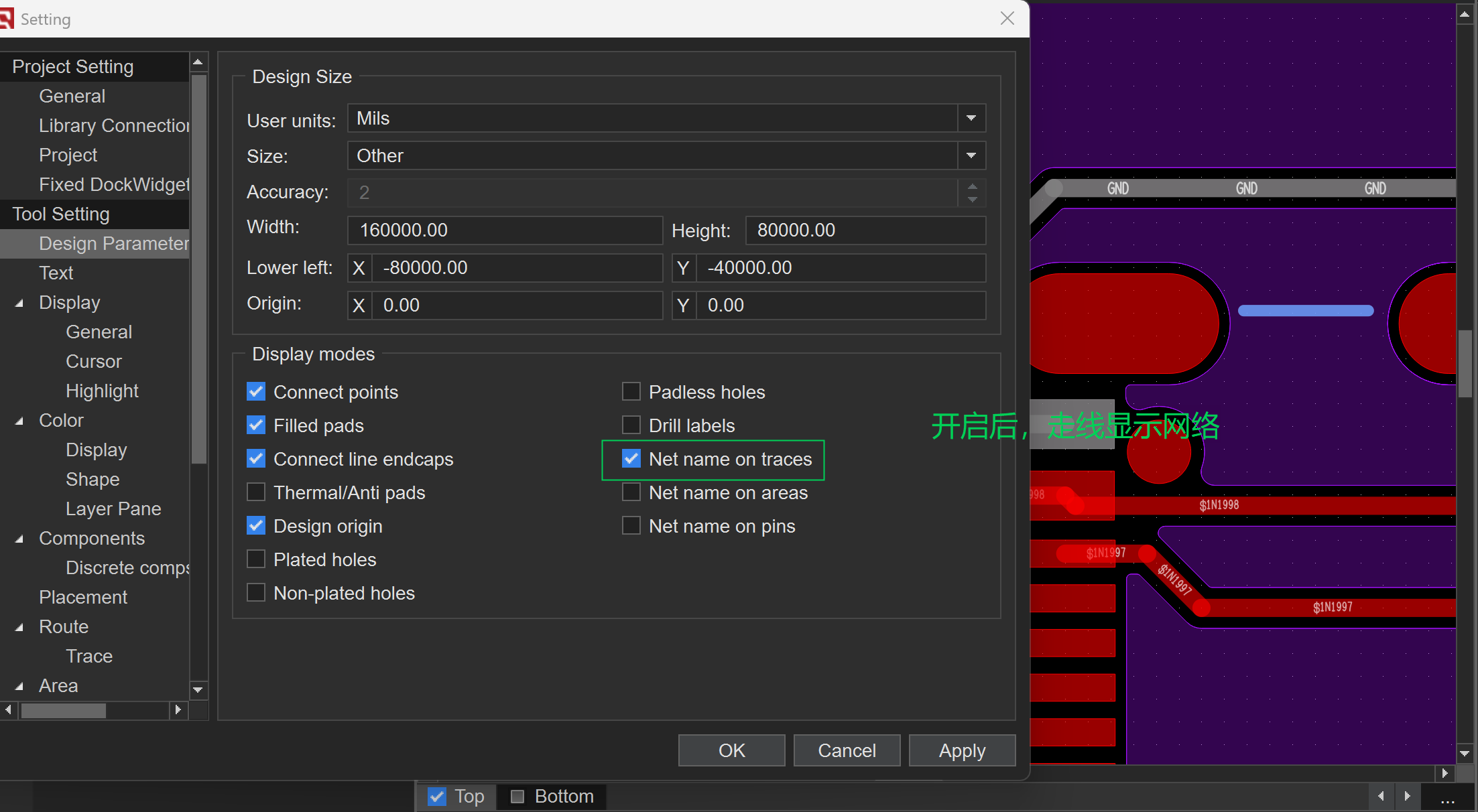 Tool Setting--Design Parameter--Net name on traces功能介绍