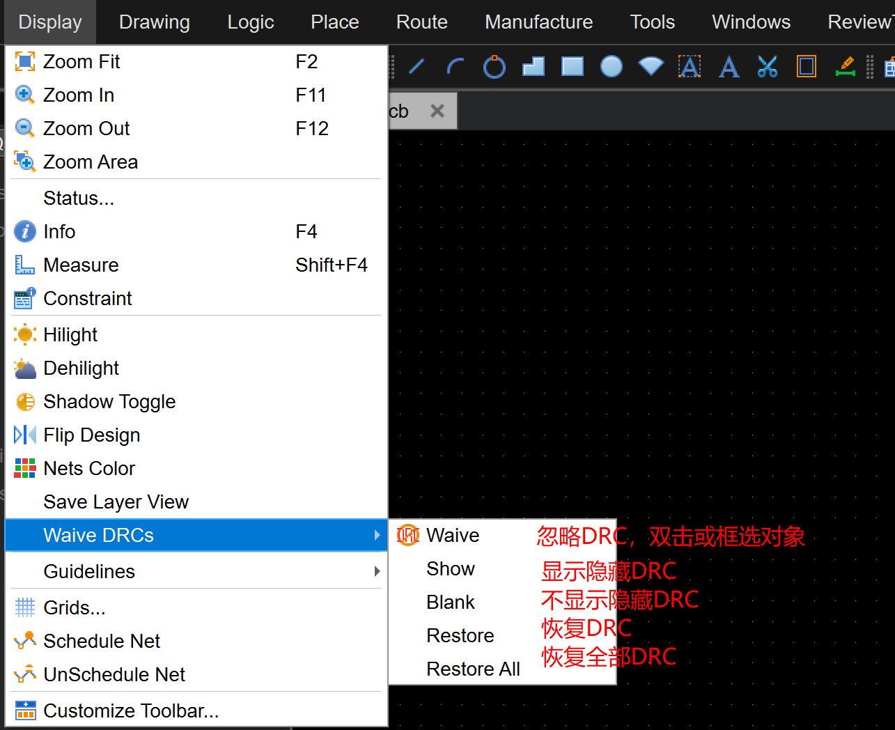 【电子工程EDA】【PCB】【Waive DRCs】Waive DRCs 日期: 2026-03-30 分类: 分享与推广 问题描述 告警信息 处理过程 根因 解决方案 建议与总结 │问题描述 Waive DRCs │解决方案
