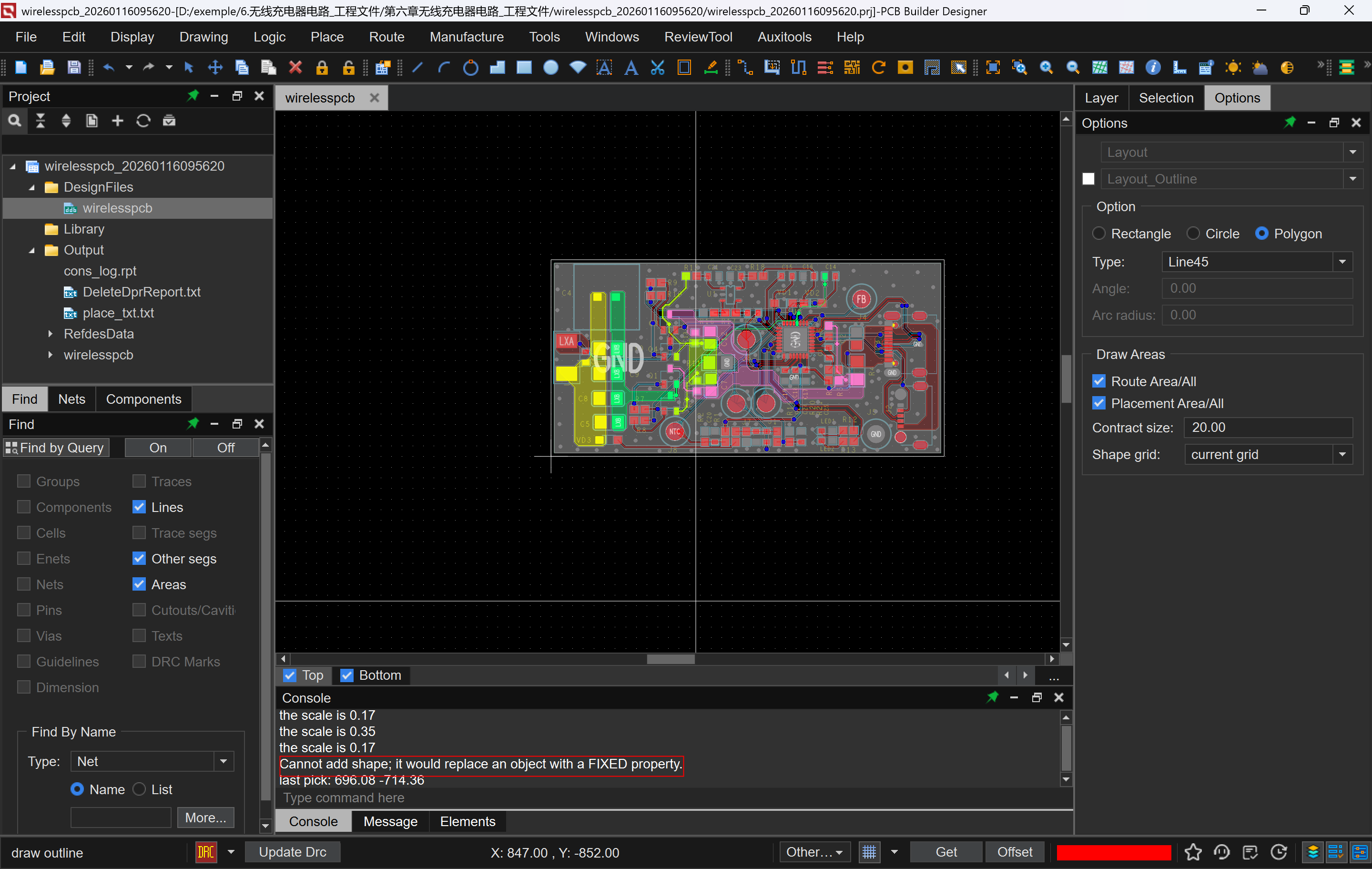【板级EDA】【一般】控制栏报错Warning:Cannot add area,it would replace an object with a FIXED property。