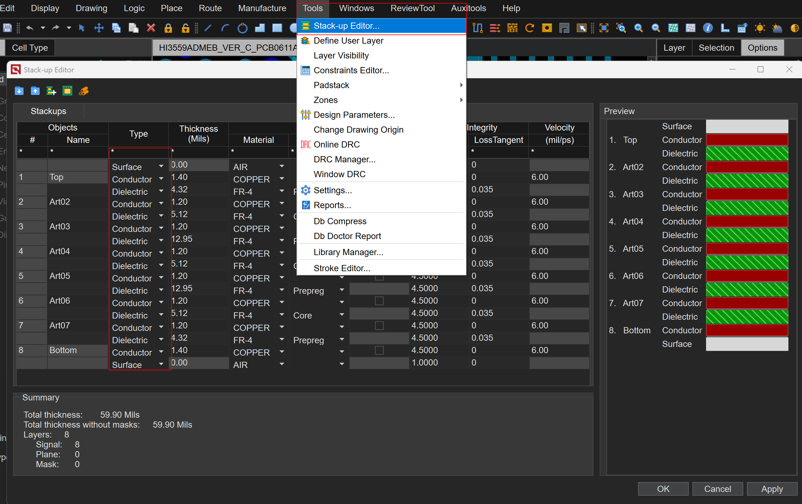 将层叠art属性设置为conductor,而非介质层