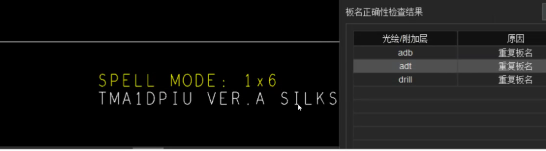 检查逻辑判定此光绘层有除板名以外的字符(检查规则判定的字符)