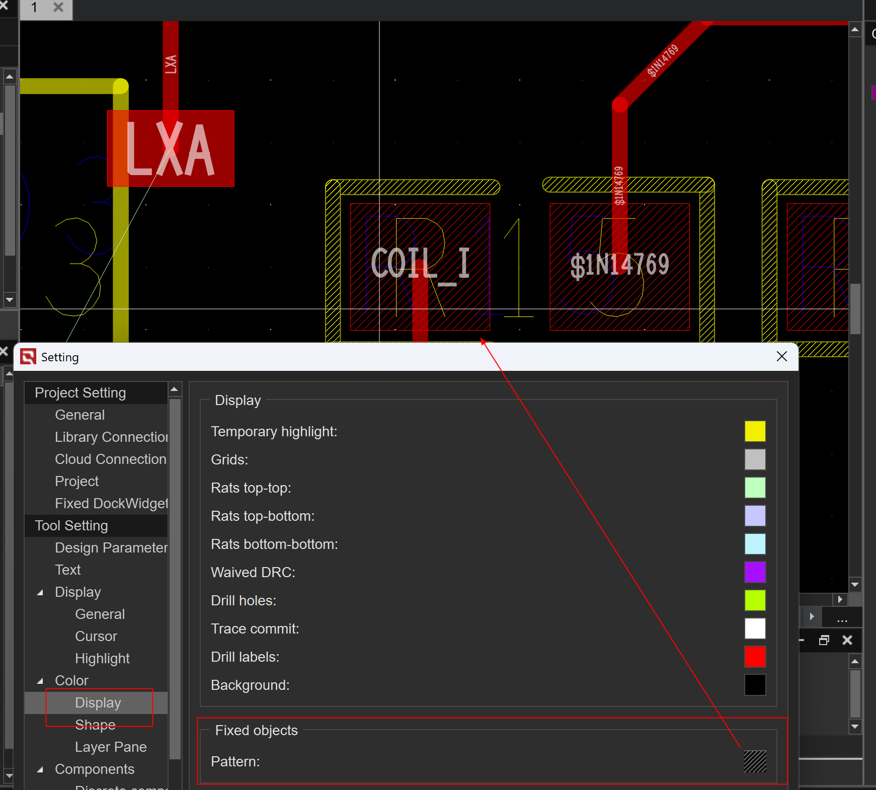 【板级EDA】【PCB设计】元素lock(锁住)之后如何设置填充可以直观看到? 日期: 2026-03-05 分类: 解决方案类 问题描述 告警信息 处理过程 根因 解决方案 建议与总结 │问题描述 │解决方案 setting-color displa-fixed objects选项可设置lock后填充样式