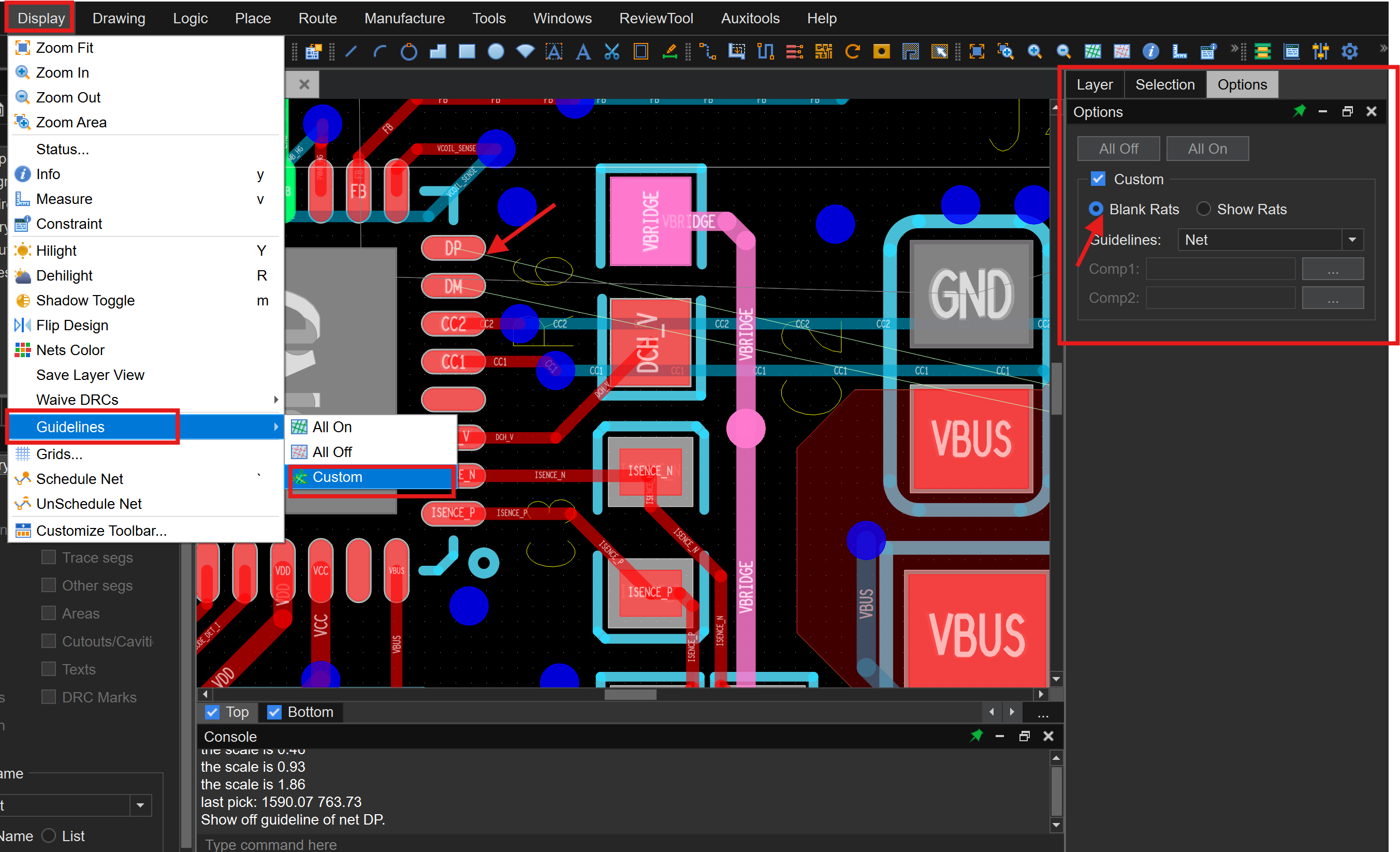 已知guideline第三选项可以显示单根飞线,那么如何只关闭单根网络的飞线?