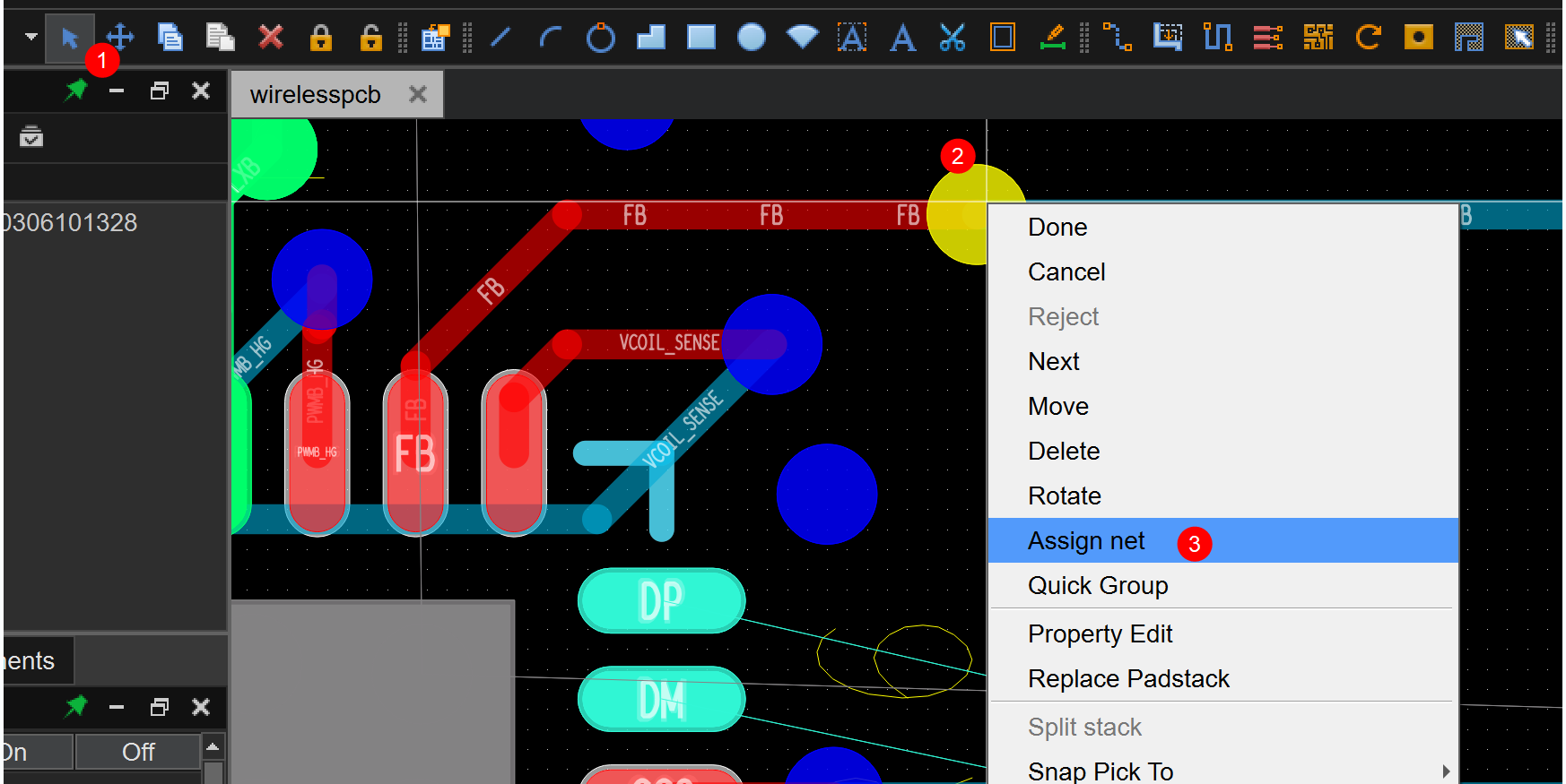 2、配置快捷键,给过孔赋网络funckey i right click assgin net to via