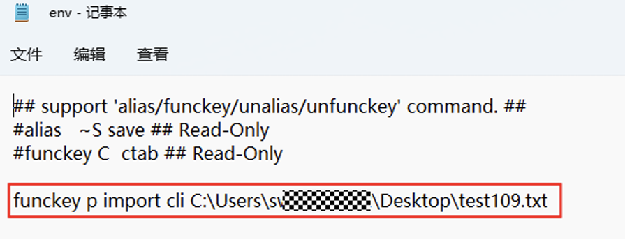 步骤 5 将复制的地址粘贴到env文件中,并使用“import cli + 宏命令文件地址”的方式使用 该文件。