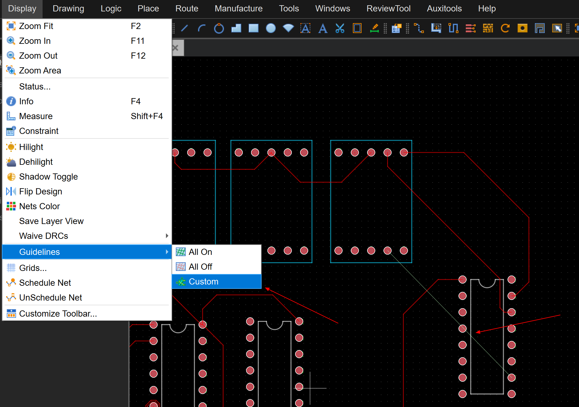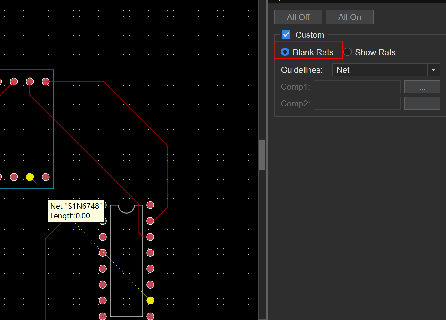 已知guideline第三选项可以显示单根网络飞线,那么如何关闭单根网络飞线?