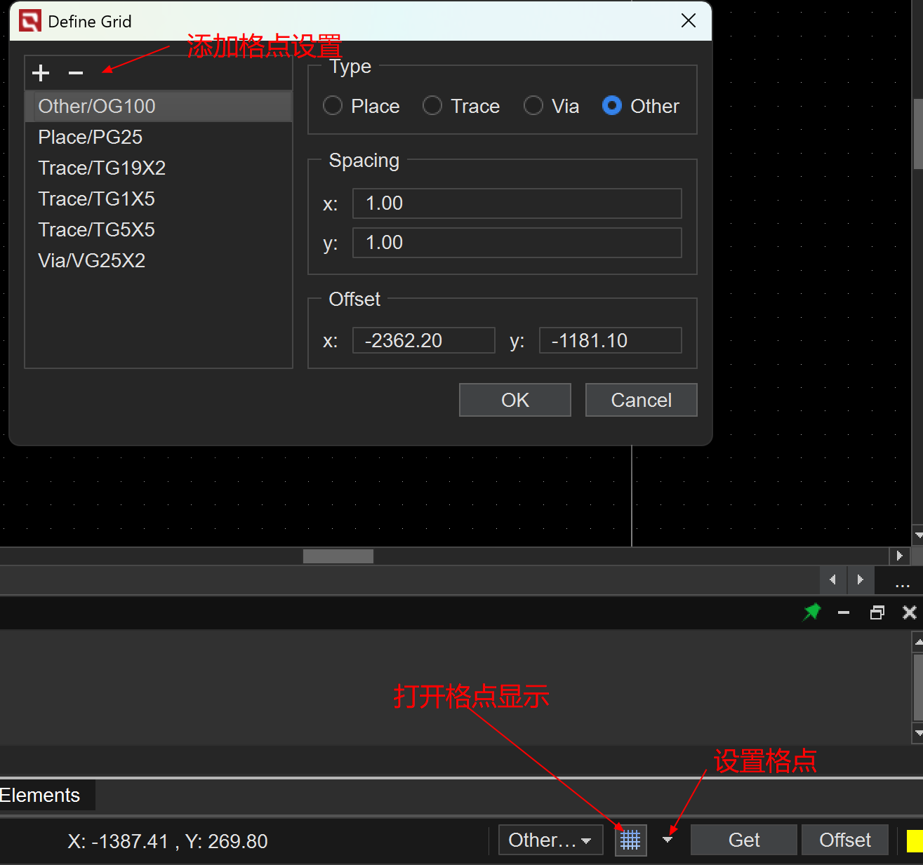 【板级EDA】【PCB设计】怎么调出格点 日期: 2026-03-12 分类: 解决方案类 问题描述 告警信息 处理过程 根因 解决方案 建议与总结 │问题描述 怎么调出格点?点哪里设计 │根因 │解决方案 在任务栏下方网格状图标可以调出格点