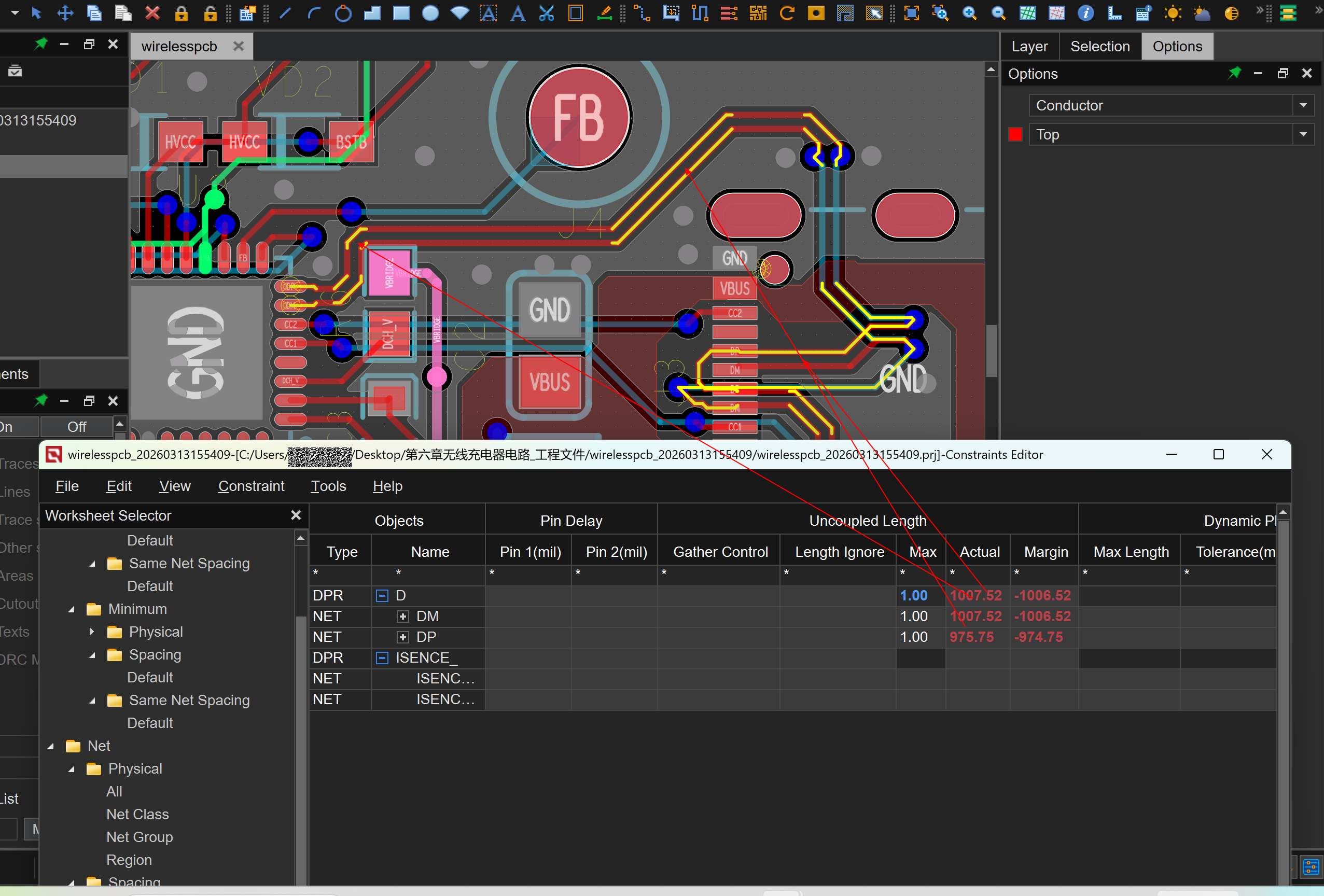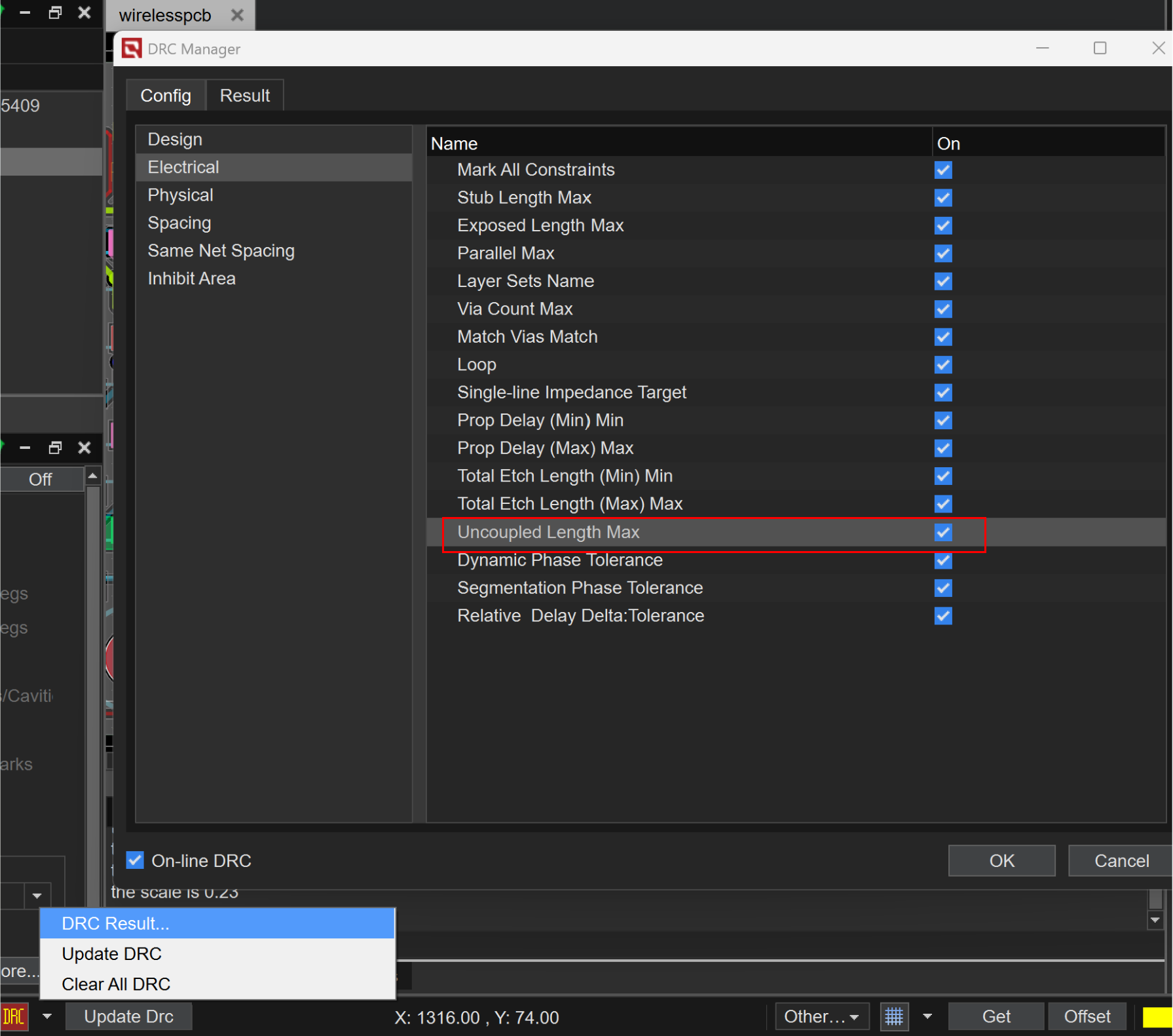 2、需配置max uncoupled length(设置完成后,不满足走线将会高亮)