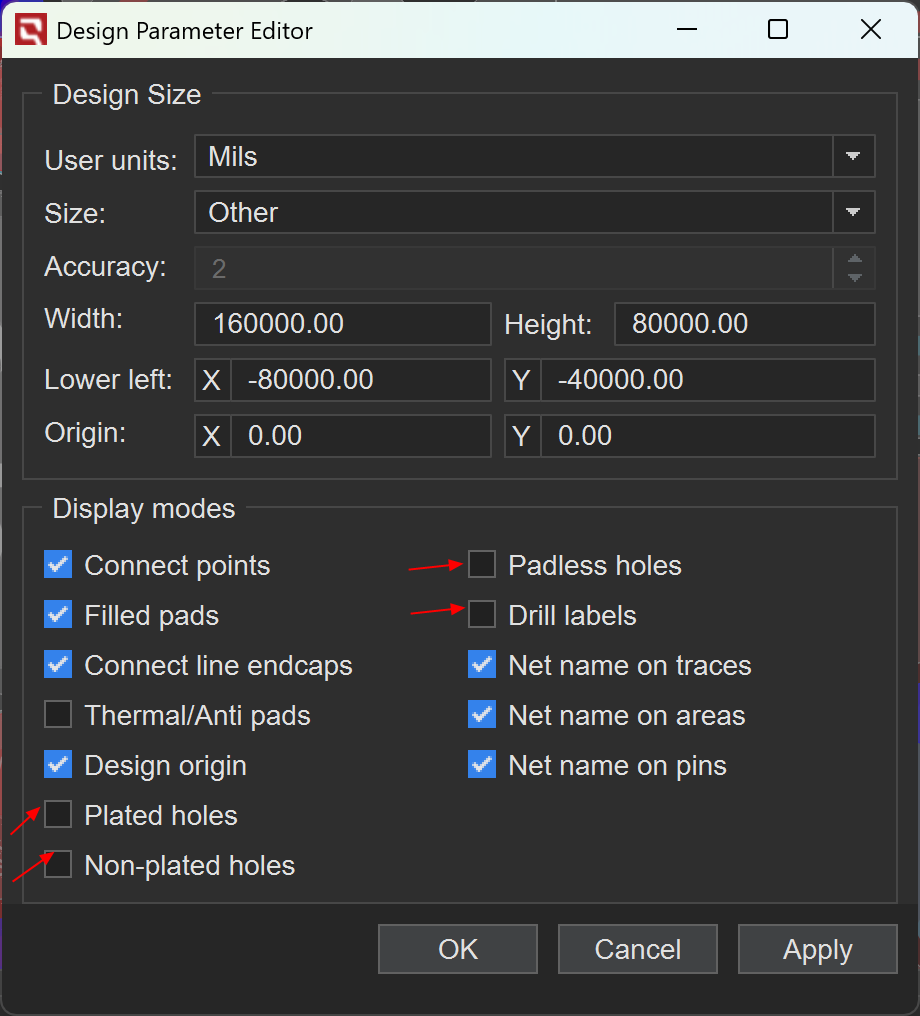 【电子工程EDA】【PCB设计】孔多导致卡顿 日期: 2026-03-23 分类: 解决方案类 问题描述 告警信息 处理过程 根因 解决方案 建议与总结 │问题描述 孔多导致卡顿怎么解决? │解决方案 建议关闭一下这些显示,减小一下显示压力,这种30W以上孔的场景在持续优化中