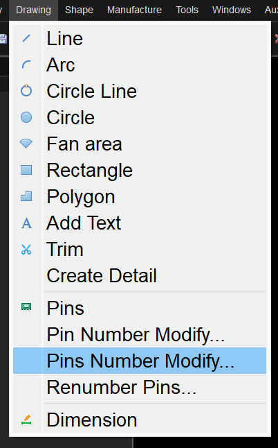 (3)Drawing-->Pins Number Modify,重新排序