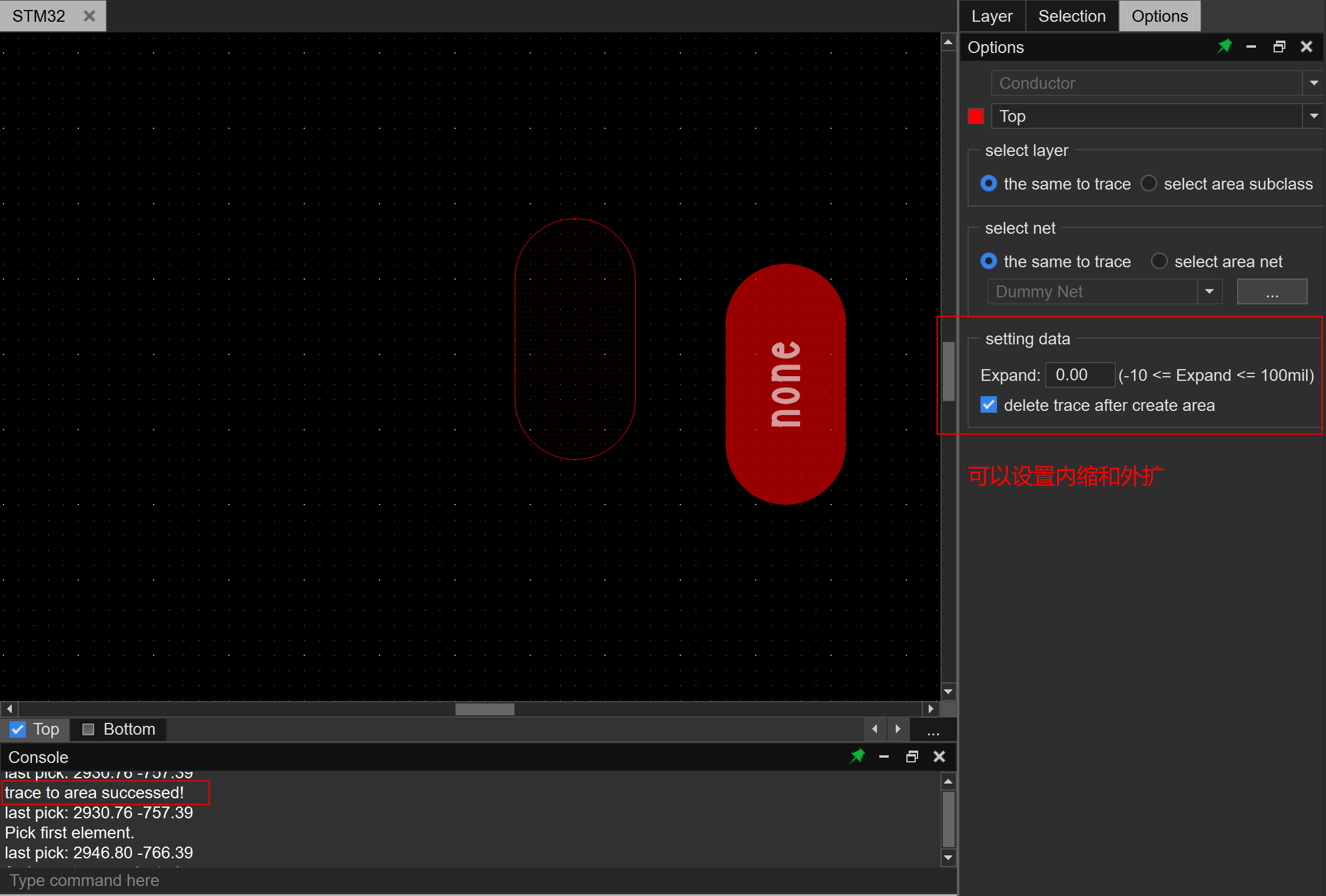 然后Trace to Area(Route-->Trace to Area)