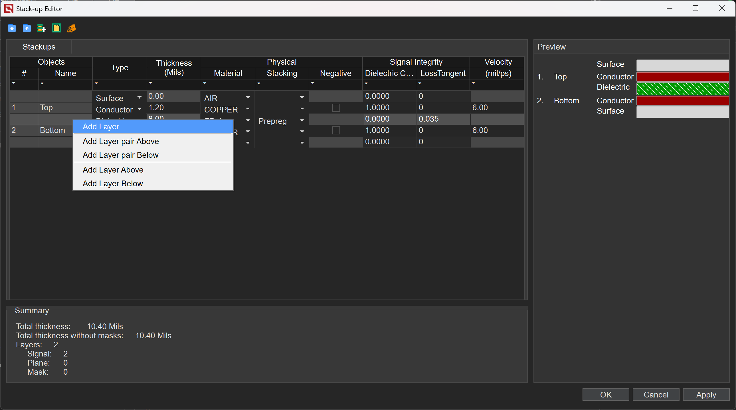 2、添加线路层,修改单板层叠